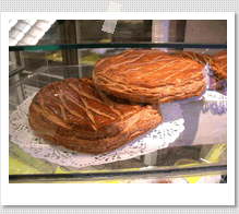 というのは実はオーバーで、このガトー・デ・ロワ、現在ではほとんど1年中パティスリー(お菓子屋さん)やブーランジュリー(パン屋さん)のガラスケースから消えることがありません。ちょうど日本の節句に食べる柏餅やちまきが、今では1年中和菓子屋さんに並んでいるのと似ています。このガトー・デ・ロワ(ガレット・デ・ロワとも呼ばれます)についてはもうご存知の方も多いと思いますが1月6日の「公現祭(エピファニー)」というキリスト教の祝日に食べられるお菓子です。 |