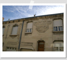 このアパルトマンは学生さんが好んで住むステュディオと呼ばれるワンルーム式のアパートが複数入った建物です。外側は石造りで重厚ですが内側は適度に改装されていることが多く、思いの外近代的なシンプルなインテリアだったりします。次の画像、入り口のドアの上にある装飾、これはもっと時代がさかのぼり、古いものは19世紀のものもあります。このような平屋の建物はエショップと呼ばれる一軒屋で家族で暮らす人々に人気があります。
