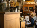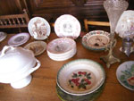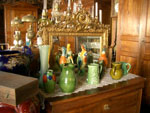 バルボチーヌと呼ばれる独特のレリーフが表面にある楽しいお皿や、お店の中に置いてある家具たちだってもちろん全部売り物です。こういうお店は往々にしてあまりお掃除には気を使わず、置いてある物もずいぶんとほこりをかぶっていたりクモの巣がくっついていたりします。フランスは個人の家、商店にかかわらず、室内の照明が全体に暗めなことが多いので、骨董屋さんで品物にほこりがしていることもなんとなく味わいのひとつのような感じがしてくるんです。