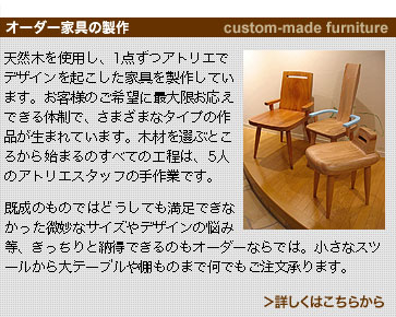 :住宅・店舗等の設計、スペースデザイン。オリジナル家具のデザイン、製作。